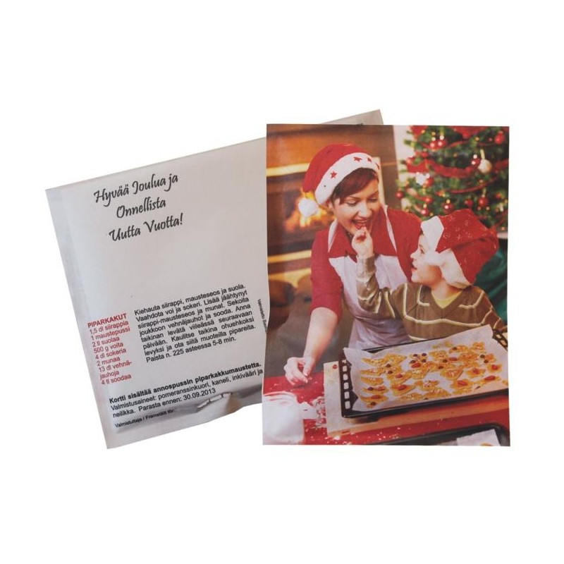 "Minigrip"-tyylinen uudelleen suljettava pussi. Väri musta. Sisälle voidaan liisähintaan tarjota esim ksylitolipurukumia, glögimaustetta, teetä, makeisia tai voit itse täyttää pussin omilla tuotteilla tms.Koko 48 x 100 mm. Nelivärinen etiketti sisältyy hintaan. Lisätietoja Minimi 300 kpl. Pyydä tarjous halutulle määrälle.