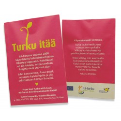 Koko 68 x 100 mm. Lisätietoja Neliväripainatus molemmin puolin tuotetta sisältyy hintaan. Minimitilausmäärä 100 kpl. Isommat määrät ja muut koot kysy tarjous/tiedustele mitä saatavilla.