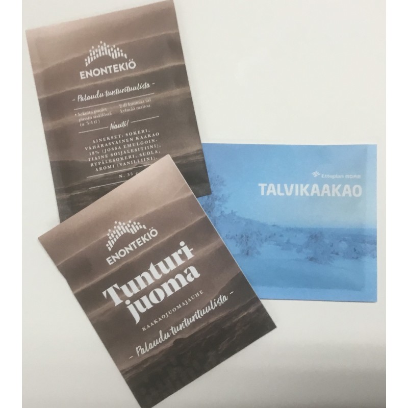 Logopussin sisällä 35g kaakaojuomajauhetta. Suomalainen tuote.