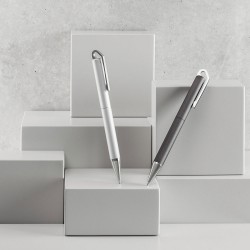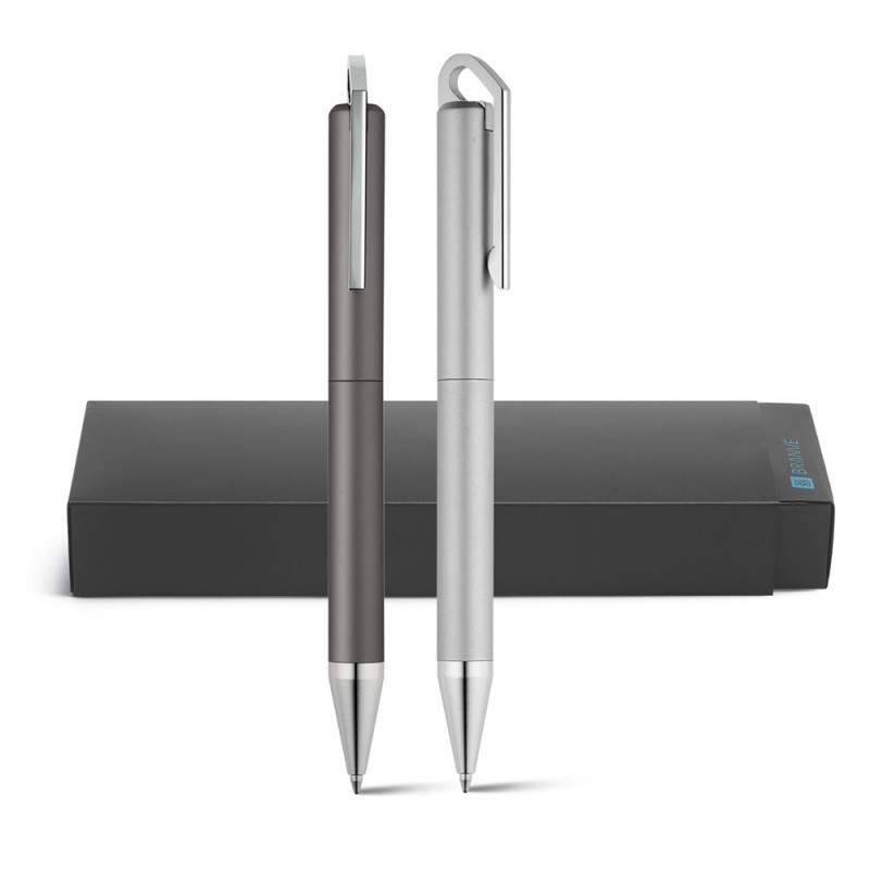 HOOK Matta kuulakärkikynä on elegantti ja hienostunut, eikä jää huomaamatta. Se on pronssinen kuulakärki kiertomekanismilla ja kirkkaalla kromipinnalla, jotka tekevät siitä kestävän. Kiiltävä kromipäällysteinen kärki ja kaksinkertainen runko (platinapäällysteinen sisäpuoli ja mattalakattu ulkopuoli) eivät ainoastaan paranna sen muotoilua, mutta myös laatua.HOOK Matte-kynässä on G2 metallinen vaihtosäiliö sinisellä Dokumental®-musteella. Tuote toimitetaan lahjalaatikossa. ø11 x 142 mm |Laatikko: 175 x 41 x 20 mm. Sininen muste.
