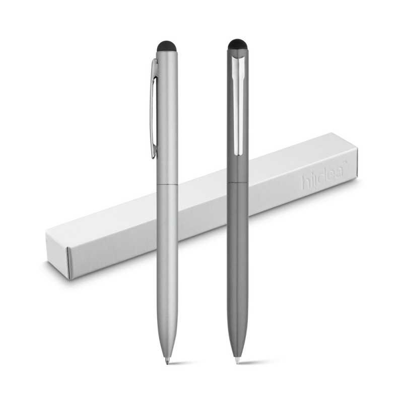 Alumiininen kuulakärkikynä kääntömekanismilla ja silikonisella kosketuskärjellä. Kiiltävä runko ja "Cross"-tyyppinen vaihtosäiliö mustalla Dokumental®-musteella. ø10 x 142 mm | Laatikko: 175 x 41 x 20 mm. Sininen muste.