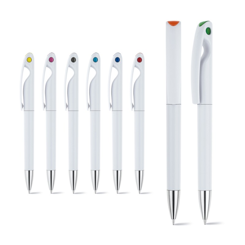 ABS-valkorunkoinen kuulakärkikynä tehostevärillä. ø11 x 141 mm. Musta muste.