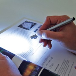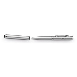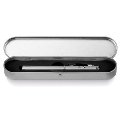 Monikäyttöinen metallinen kuulakärkikynä valkoisella LED-valolla, punaisella laserosoittimella ja mustalla kosketusnäyttökärjellä. Toimitetaan metallirasiassa. Sisältää 3 LR41-paristoa. ø10 x 125 | Laatikko: 178 x 38 x 20. Sininen muste.