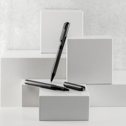 AUTOGRAPH on hienostunut kuulakärkikynä- ja kuulamustekynäsetti. Kuulamustekynä on mustaa mattametallia teräskorkilla ja kuulakärkikynä on mustaa mattametallia, jonka klipsi on ruostumatonta terästä. Tämä minimalistinen ja erityinen setti sisältää on vaihtosäiliön mustalla Dokumental Ink®-musteella. Tuote toimitetaan lahjalaatikossa. ø10 x 135 mm | Laatikko: 73 x 173 x 28 mm. Sininen muste.