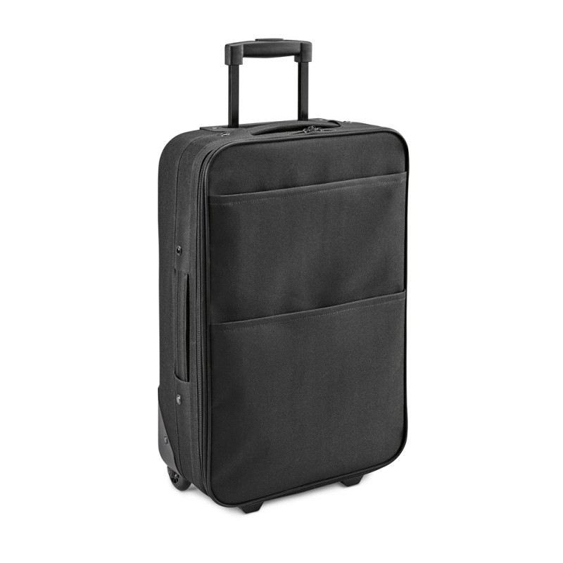 600D vedettävä matkalaukku vuoritetulla sisäosalla ja etutaskuilla. Takana tasku ja nimilappu. Pidennettävä alumiinikahva. Kapasiteetti 31 litraa. 345 x 540 x 160 mm