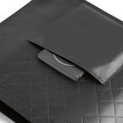 Musta ostoskassi laminoitua kuitukangasta (110 g/m²) etutaskulla (175 g/m²). 381 x 330 x 200 mm