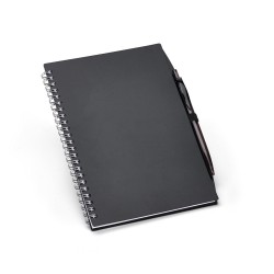 A5 PP spiraalimuistikirja. 140 viivoitettua sivua ja kynäpidike sekä kynä. 150 x 210 mm