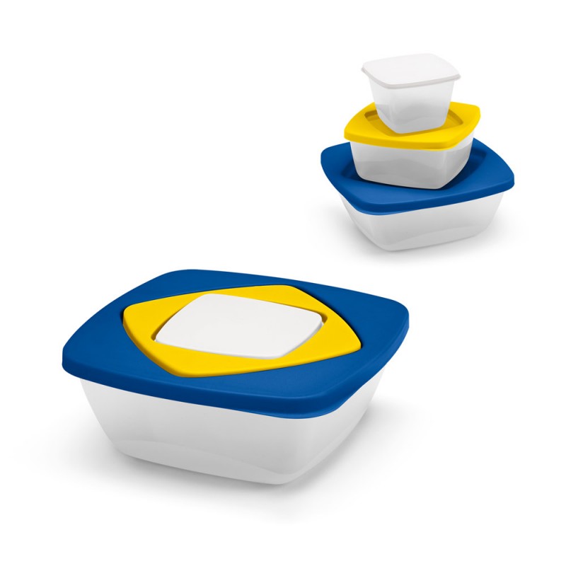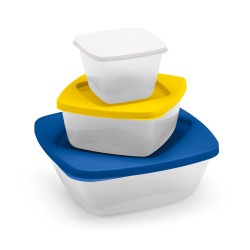 3 hermeettisen PP rasian setti. Tilavuudet 1160 ml, 560 ml ja 230 ml. 170 x 170 x 67 mm
